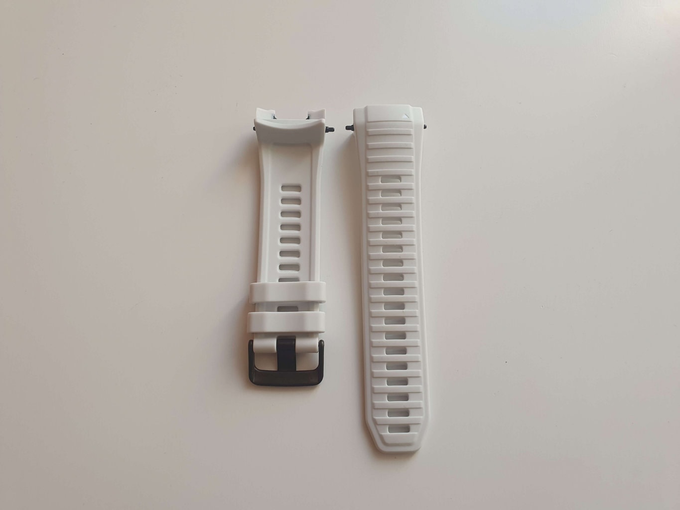 Az Instinct 2X Solar óra olyan szíjjal rendelkezik, amely szélesebb és vékonyabb csuklóra egyaránt illik, 145 és 228 mm közötti kerülettel. Minden lyuk egy horonyban található, amely a csatot rögzítés nélkül is némileg ott tartja a helyén. Az ideális hossz megtalálása így egy kicsit könnyebb, mintha a csat folyamatosan csúszna a szíjon. A pánt kényelmesen illeszkedik a kézhez, és 26 mm-es szélessége ellenére még egy vékony csuklón sem zavarja a tevékenysége közben.